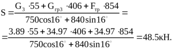 RАZ=Ргц cos7°-Scos16°= 82.16•cos7°-71.98•cos16°=12.44 кН.
