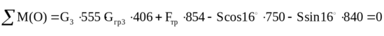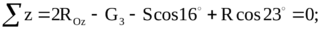 ∑z= 2Roz+S cos16° - Fтрsin54°-Gгр3=0;