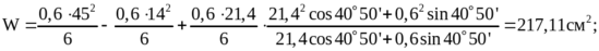 F=2•0,6•15,5+0,6•21,4=31,44 см2.