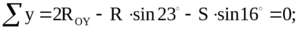 34,97•cos54° - 48,5• sin16°+2Roy=0;