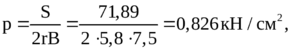 р=38,69/(2•3,5•4)=1,4 кН/см2.