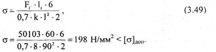 Возьмем материал Ст6, п4=650 Н/мм, запас прочности n = 1,5. Наибольшее нормальное напряжение будет: