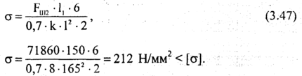 ср=56521/((2*3.14*15**2)/4)=160 Н/мм2<[cp]