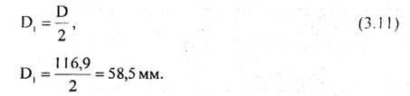 Исходя из конструктивных соображений возьмем два цилиндра, поэтому диаметр одного цилиндра будет равен:
