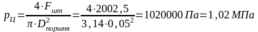 Определение минимального давление в гидроцилиндре, необходимого для поднятия рельсошпальной решётки: