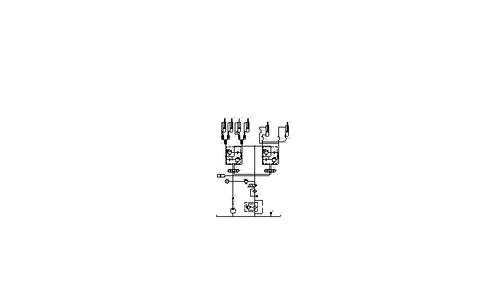 Для включения РО1 машинист подаёт напряжение на обмотку электромагнита, который переводит распределитель Р1в рабочее положение, и силовой поток жидкости идёт к гидроцилиндрам Ц1-Ц4: