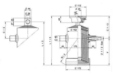 т.к. нам необходимо передвинуть емкость на расстояние 2950мм. Принят телескопический гидроцилиндр двухстороннего действия.
