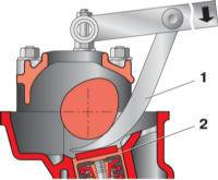 Вводим "клык" приспособления между кулачком и толкателем.