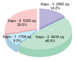 Для перевізників, а особливо міжнародних, однією з першочергових задач є забезпечення рухомим складом відповідно до міжнародних вимог, що постійно посилюються та пов'язані, головним чином, із проблемами навколишнього середовища, безпекою транспортного процесу. Серед рухомого складу перевізників України, членів АсМАП 9,5% відповідають вимогам Євро-1, 46,8% — Євро-2, 14,2% — Євро-3(див. рис. 1.3.2,5).