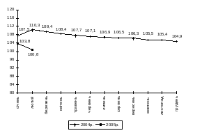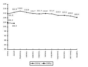 Рис . 1.2.1Вантажооборот підприємств транспорту (кумулятивно у % до відповідного періоду попереднього року)