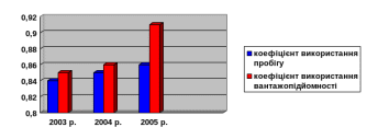 Рис. 2.10. Динаміка зміни коефіцієнтів використання пробігу та вантажопідйомності.