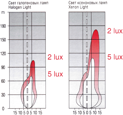 Ксеноновая лампа излучает в два раза больше света, чем галогеновая лампа и в то же время потребляет меньше энергии, что снижает нагрузку на генератор.