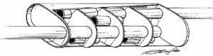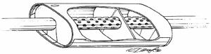 Принцип его работы прост. В корпусе глушителя имеется существенное заужение диаметра трубы, некое акустическое сопротивление, а за ним сразу большой объем, аналог емкости. Продавливая через сопротивление звук, мы колебания сглаживаем объемом. Энергия рассеивается в дросселе, нагревая газ. Чем больше сопротивление (меньше отверстие), тем эффективней сглаживание. Но тем больше сопротивление потоку. Наверное, плохой глушитель. Однако в качестве предварительного глушителя в системе – довольно распространенная конструкция.
