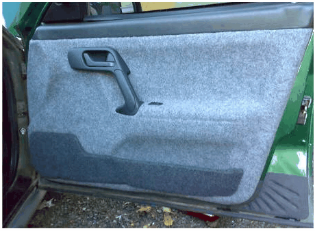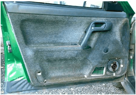 Рассмотрим перетяжку деталей салона автомобиля карпетом, на примере обшивок дверей.