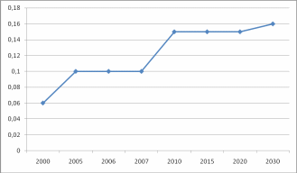 | год | 2000 | 2005 | 2006 | 2007 | 2010 | 2015 | 2020 | 2030 |