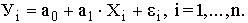 где n – число наблюдений; а0, а1 – неизвестные параметры уравнения; ei – ошибка случайной переменной У.