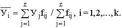 В итогах корреляционной таблицы по строкам и столбцам приводятся два распределения – одно по X, другое по У. Рассчитаем для каждого Хi среднее значение У, т.е.