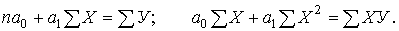 т.е. сумма квадратов отклонений эмпирических значений зависимой переменной от вычисленных по уравнению регрессии должна быть минимальной. Сумма квадратов отклонений является функцией параметров а0 и а1. Ее минимизация осуществляется решением системы уравнений25