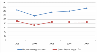 Рис. 2.2 – Перевозки грузов и грузооборот внутреннего водного транспорта всех видов деятельности