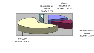 - лампы ДРИ и DNT – 56,7 кВт (65,5 %);