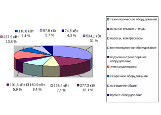 - технологическое оборудование, РΣ = 534,1 кВт, или 31,0 %;