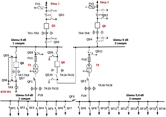 Ввод питающей сети на ТП Депо выполнен на напряжении 6 кВ. В зависимости от типа линии и класса напряжения сечение проводников питающей сети выбирается в соответствие с ПУЭ /4/ по допустимому длительному току и проверяется по:
