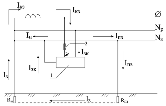 Призначення нульового захисного провідника - забезпечити необхідне для відключення установки значення току однофазного короткого замикання шляхом створення для цього струму ланцюгу з малим опором.
