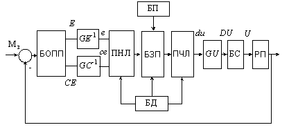 Сигнали помилки і похідної помилки перетворюються блоками GE-1 і GC-1 у відповідні сигнали у відносних одиницях e і ce шляхом ділення на масштабні коефіцієнти. Аналогічно, вихідний керуючий сигнал u обчислюється шляхом множення вихідного сигналу у відносних одиницях du на масштабний коефіцієнт GU, з наступним його інтегруванням блоком БІ для одержання u.