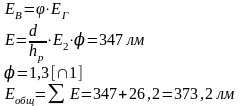 Из проведенного расчета видно, что освещенность в т.А равна 373 лм. Освещенность нормируемая должна быть 300 лм. Значит, освещенности достаточно.