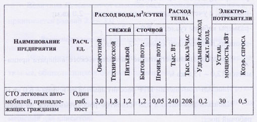 Расход воды принимаем из таблицы в расчете на один рабочий пост, т.о.: