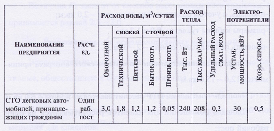 3.2 Расчет потребности основных видов ресурсов для технологических нужд СТО