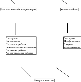 Линии ремонта блоков и головок цилиндров имеют П- образную конфигурацию, а коленчатых валов - Г-образную. Конфигурация линии обусловливаются общей компоновкой участка, когда линии, предназначенные для восстановления деталей, имеют направление, перпендикулярное к линиям, предназначенным для сборки силовых агрегатов. Такое расположение линий обеспечивает лучшие условия подачи деталей на соответствующие сборочные рабочие места, а также улучшает общую транспортную схему предприятия.