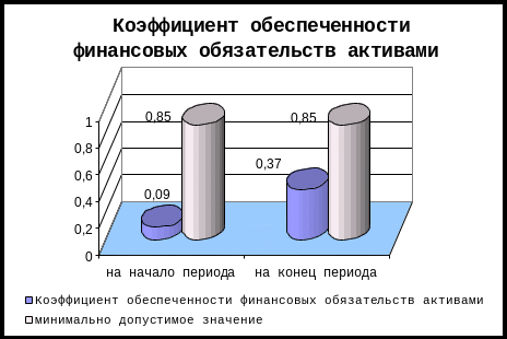 | Коэффициент обеспеченности финансовых обязательств активами (Ко.а.) | Ко.а. = (раздел IV – стр.550)/стр.300 | 0,09 | 0,37 | 0,28 |