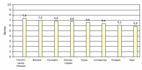 | Автомастер | 6 | 6 | 8 | 5 | 7 | 6 | 7 | 8 | 7 | 5 | 6 | 5 | 8 | 6 | 6,43 |