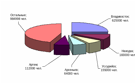 Рисунок 2 – Распределение численности населения по городам Приморского края на 2002 г.