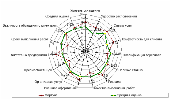 В соответствии со значениями средней оценки предприятие Фортуна размещается на втором месте после TOYOTA Центр Находка (рис. 4).