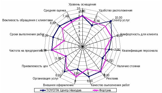 В сравнении с лидером предприятий автосервиса в г. Находке предприятием TOYOTA Центр Находка (рис. 8) у предприятия Фортуна есть также как сильные, так и слабые стороны.