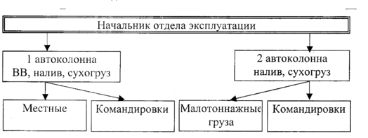 Отдел эксплуатации является важным структурным подразделением. Основные его задачи – организация перевозок грузов, обеспечение выполнения установленного плана перевозок по клиентуре и номенклатуре при наиболее эффективном использовании подвижного состава. Для исполнения возложенных функций, служба эксплуатации может требовать от других служб, отделов и подразделений необходимые данные, имеющие отношение к производству транспортной продукции, например, от технической службы – ежедневные сведения о техническом состоянии подвижного состава, от планово-экономической службы – сведения о плановом задании и фактическом уровне показателей, от бухгалтерии – сведения о состоянии расчетов с клиентурой, от водителей –правильного оформления товаротранспортных накладных и своевременной их сдачи.