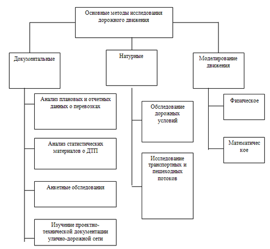 Рисунок 3 - Структурная схема классификации основных методов исследования дорожного движения