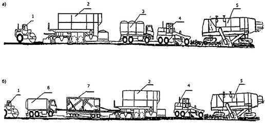 4 - автогрейдер; 5 - фреза; 6 - эмульсиовоз; 7 - суспензатор