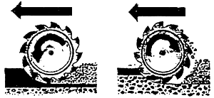), вращение фрезерного барабана осуществляется "сверху-вниз" по отношению к направлению движения потока;