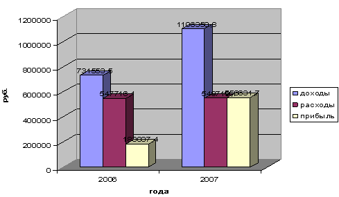 Динамика изменения прибыли за 2006 - 2007 годы, руб.
