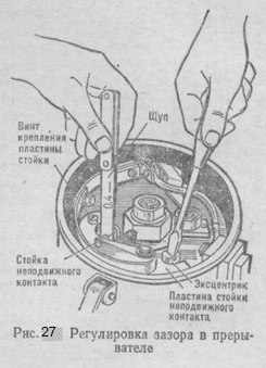 Чтобы индуктировать ток высокого напряжения во вторичной обмотке катушки зажигания, необходимо периодически размыкать первичную цепь батарейного зажигания, что и выполняет прерыватель. Для распределения тока высокого напряжения по цилиндрам соответственно порядку работы двигателя служит распределитель. Оба эти прибора объединены в один — прерыватель-распределитель.