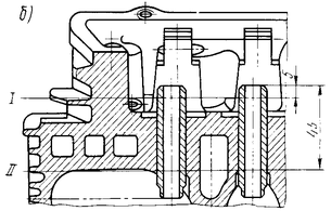 Діаметр стержня нового випускного клапана 7,925...7,937, впускного 7,955...7,967 мм. Допуск стержня допускається не більше 0,01 мм на довжині циліндричної частини. Якщо діаметр стержня впускного клапана менше 7,918 мм, а випускного 7,852 мм, то такі клапани потрібно замінити. При відсутності обгара або облому направляючих втулок клапана поміряти діаметр отвору втулок (мал. 11) для визначення їх придатності по зносу. Вимірювання виконують у двох поясах і по двох напрямках: паралельно і перпендикулярно осі колінчастого вала.