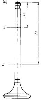 Якщо за результатами огляду нема причин для вибраковування клапанів (обгар робочої фаски, задир на стержні), то потрібно заміряти стержні клапанів у двох поясах (I и II) по двох взаємно перпендикулярних напрямках (мал. 10) для визначення їх зносу.