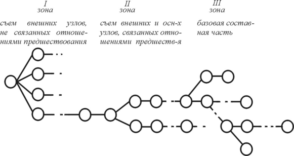 I зона – съем внешних узлов, не связанных отношениями предшествования – имеет интенсивные ветвления.