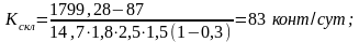 За результирующую перерабатывающую способность склада принимаем наименьшее значение.