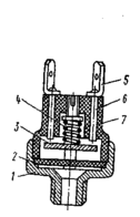 1 - корпус; 2-мембрана; 3 -контакт подвижный; 4 -пружина; 5 - вывод неподвижного контакта; 6 -контакт неподвижный; 7 –крышка