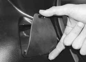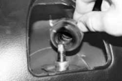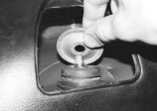 2. Стискаємо фіксатор і відкриваємо кришку для доступу до верхньої опори амортизатора.