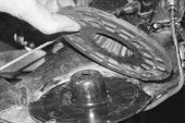 4. Знімаємо нижню прокладку пружини з майданчика на балці задньої підвіски.